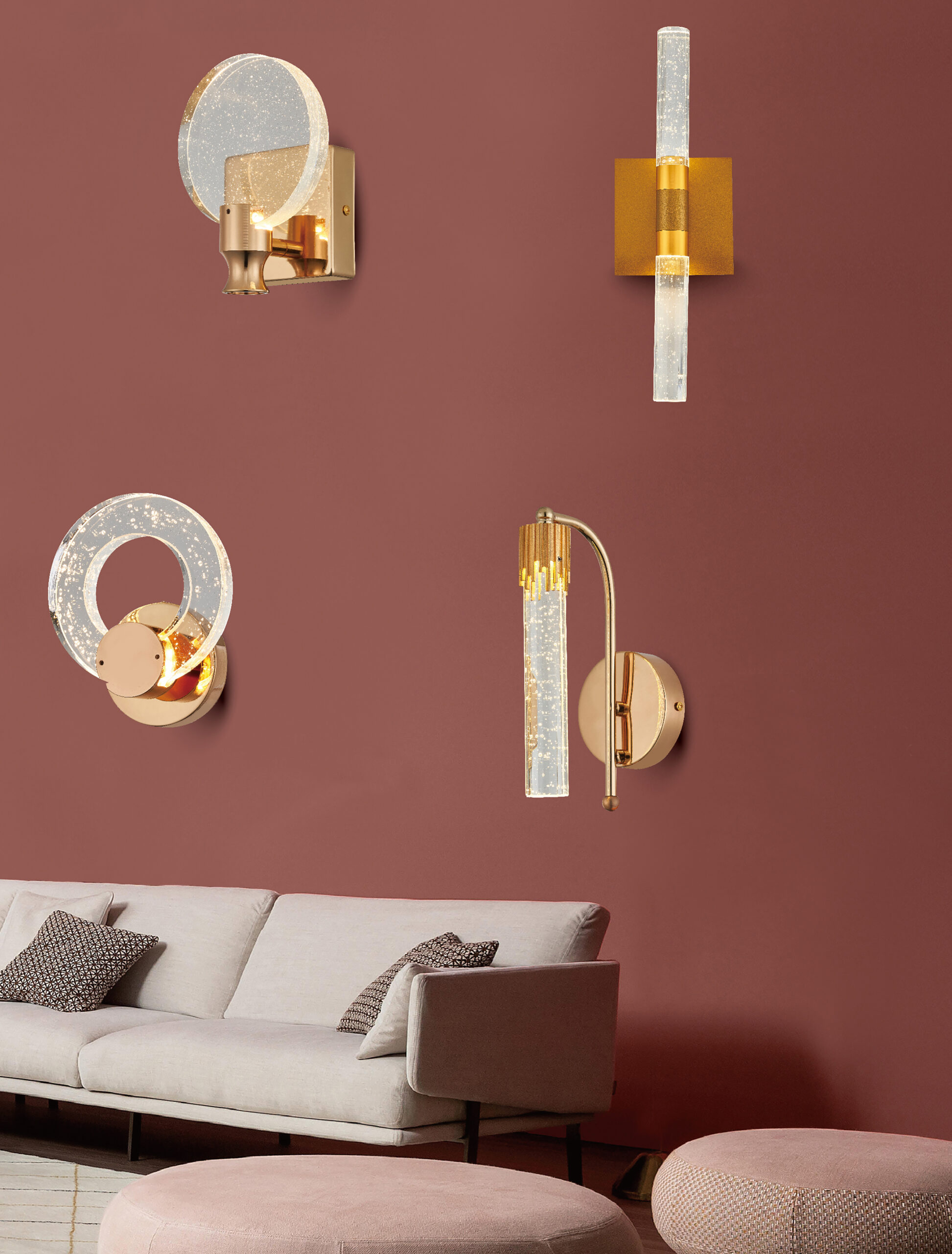Arandela miniaturizada (15cm) da linha crystal, ideal para espaços onde arandelas padrão (25-30cm) seriam desproporcionais. Oferece o brilho e sofisticação do cristal em formato compacto.