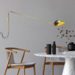 Efeito Luminoso: Luz de tarefa e ambiente altamente posicionável. A grande estrela é a flexibilidade: o difusor pode ser trazido para exatamente sobre uma mesa de trabalho, um livro, um quadro ou uma planta, funcionando como um pendente virtual que pode ser movido conforme a necessidade. É iluminação sob demanda.