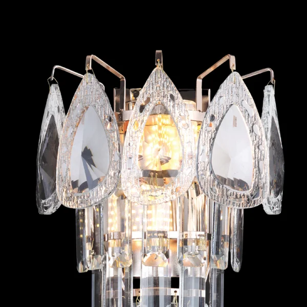 Recomendação de lâmpadas: 2 x lâmpadas E14. Para potencializar o efeito do cristal, sugere-se lâmpadas LED E14 de filamento vintage transparentes com potência equivalente a 40W incandescente cada e temperatura de cor quente (2700K-3000K), criando uma luz aconchegante e cheia de brilho.