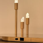 Centro de mesa iluminado sem fios com carregamento USB-C (tecnologia atual). Combina utilidade (bandeja) com decoração iluminada (castiçais de quartzo). Permite criar atmosfera íntima em qualquer lugar sem restrições de tomadas.