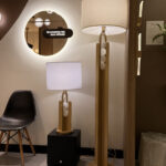 Ao lado de poltronas de leitura ou sofás grandes em salas de estar amplas.