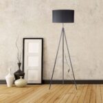 Nota: Luminária de pé de grandes dimensões e presença escultural, que combina uma coluna metálica vertical com um grande difusor cilíndrico ou cônico de tecido na parte superior. Funciona como uma fonte de luz ambiente autônoma e de grande impacto, capaz de iluminar e definir cantos de ambientes com luz suave e difusa.