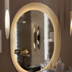 Conceito: Espelho oval com iluminação integrada para criar atmosfera