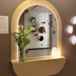 Conceito: Espelho decorativo com prateleira funcional e iluminação ambiente integrada