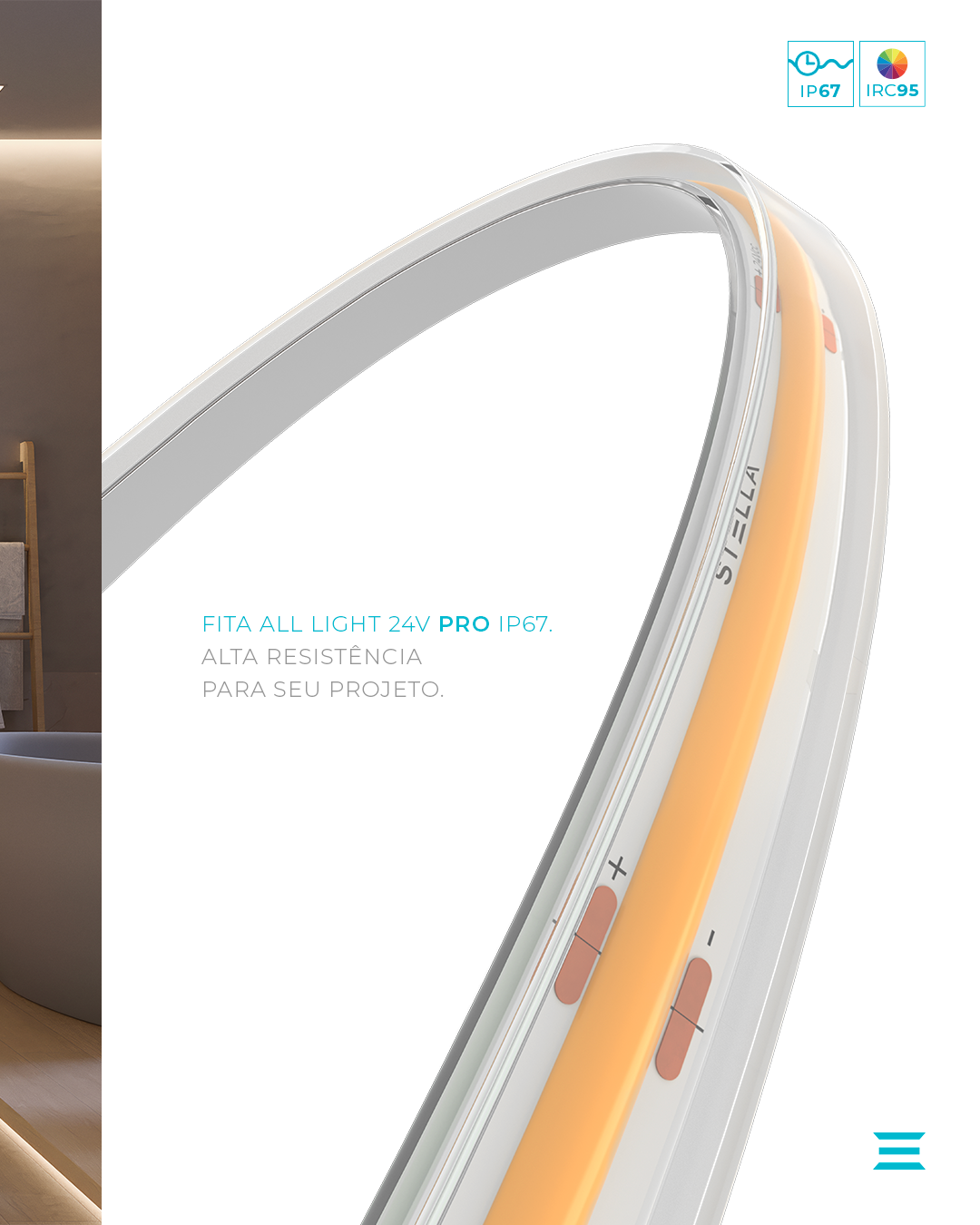 Apresentamos a linha ALL LIGHT PRO 24V, a evolução da iluminação linear contínua da Stella. Desenvolvida para atender projetos residenciais e comerciais que exigem alto fluxo luminoso, excelente reprodução de cores (IRC >90) e máxima durabilidade, essa família de fitas LED COB 24V é a solução definitiva para iluminação arquitetônica de impacto.