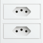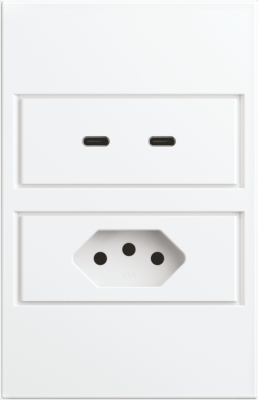 Nota: Tomada dupla de 10A, padrão brasileiro, projetada para conexão segura e duradoura de dispositivos eletrônicos, iluminação de baixa potência e eletroportáteis leves. Ideal para uso geral em todos os cômodos da residência ou escritório.