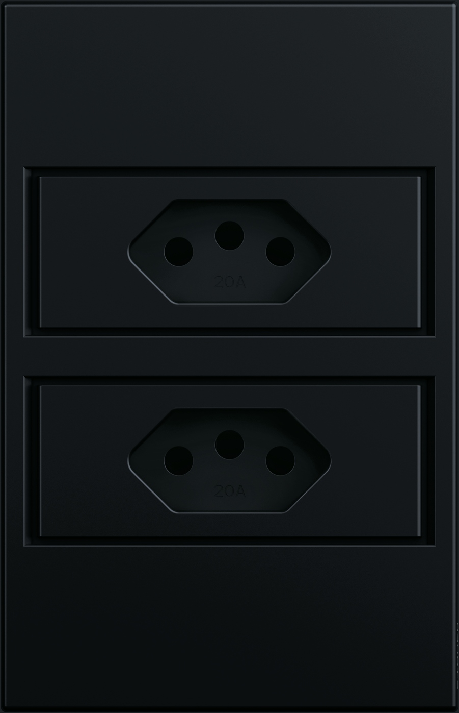 Nota: Tomada dupla de 20A, projetada para suportar cargas elétricas mais elevadas. É a solução ideal para pontos dedicados a eletrodomésticos de média e alta potência, garantindo segurança e performance em ambientes como cozinhas, lavanderias e áreas de serviço.