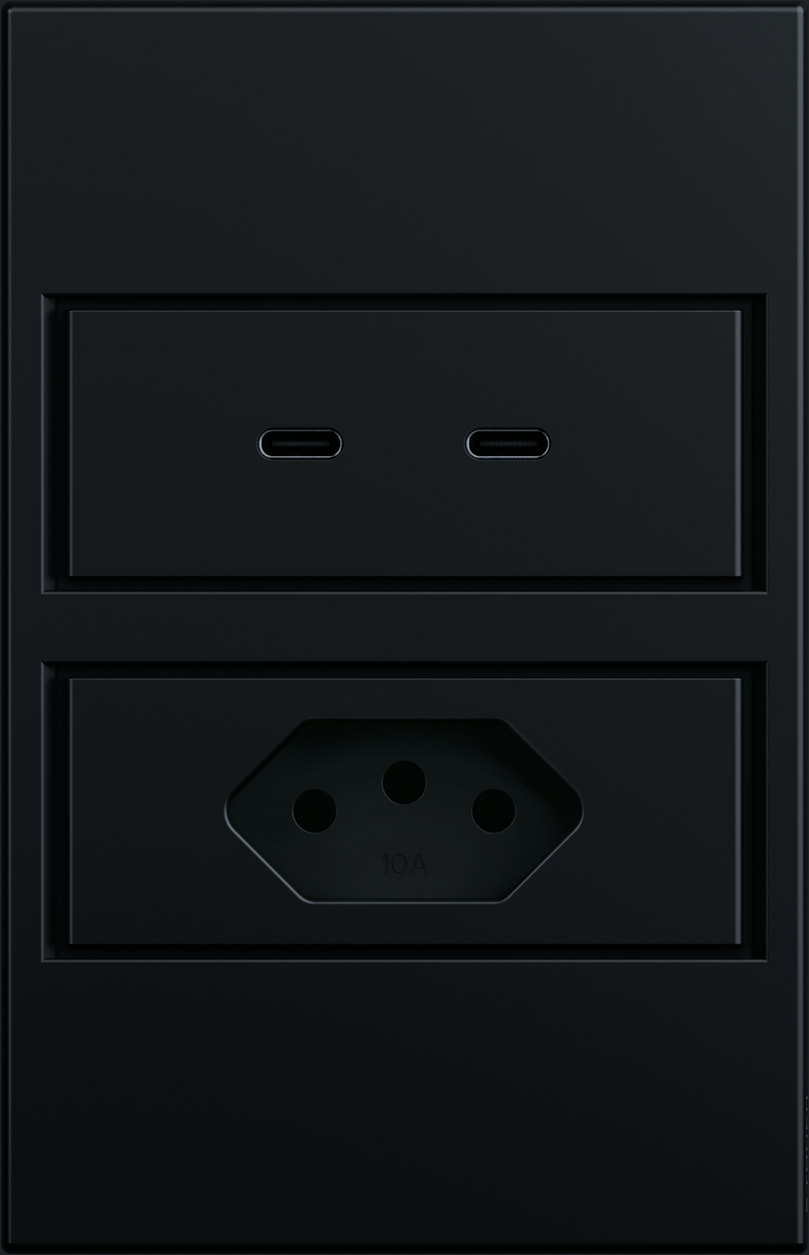 Nota: Tomada inovadora que combina uma tomada elétrica padrão de 10A com duas portas USB-C de carregamento rápido (2.4A cada). Elimina a necessidade de adaptadores e oferece uma solução completa e limpa para carregar smartphones, tablets, fones Bluetooth e outros dispositivos USB-C.